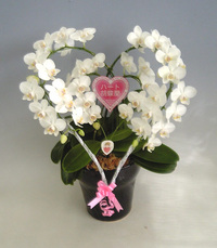 ハート仕立てにした可愛らしい胡蝶蘭です。