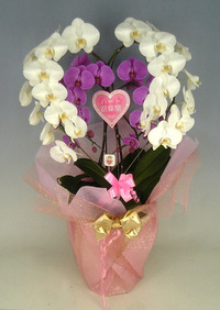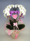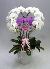 ハート仕立てにした可愛らしい胡蝶蘭です。